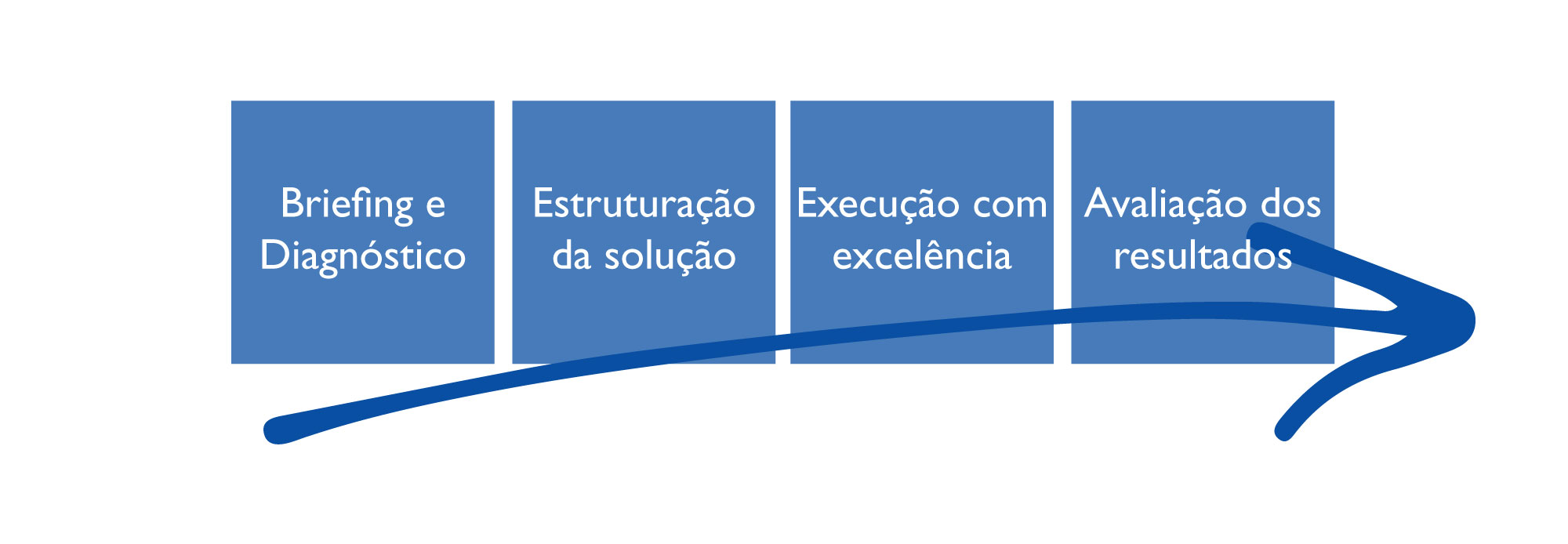 Para isso, inicialmente realizamos junto ao cliente um Briefing detalhado das necessidades, e um diagnóstico da situação atual. A partir daí estruturamos a solução, que é executada com excelência e ao final realizamos uma avaliação de resultados.